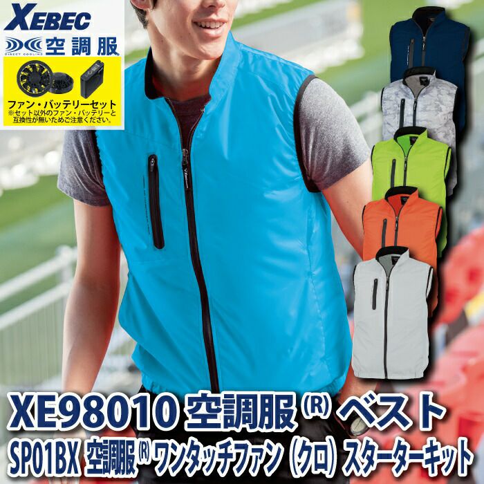 空調服 電動ファン 作業服 XEBEC 空調服 電動 ファン対応 春夏用 ジーベック 作業服 作業着 XE98014setR3-01(SP01BX) 空調服制電ベスト バッテリとファンのセット S-5L
