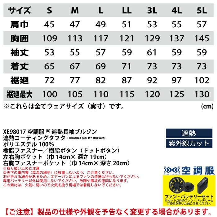 空調服 電動ファン 作業服 XEBEC 空調服 電動 ファン対応 春夏用 ジーベック 作業服 作業着 XE98017setR3-01(SP01BX) 空調服遮熱長袖ブルゾン バッテリとファンのセット S-LL