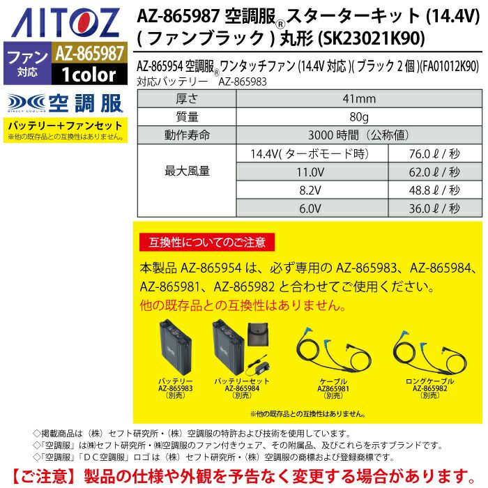 ※快適に動作させるには、専用の「バッテリー」+「ファン」+「ウェア」が必要になります