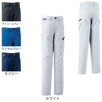 ●関連商品※8116ジャケット※8114メンズカーゴパンツ※8112メンズパンツ※81141レディースカーゴパンツ※81121レディースパンツ●秋冬用●素材:裏綿ツイル(帯電繊維混入) ポリエステル90% 綿10%●ストレッチ、形状安定性、帯電防止、コインポケット、両脇ダブルループ、カーゴポケット仕様+スライダー隠し反射、ピスネーム●サイズ:S(ウエスト/60、股上/22、股下/80)、M(ウエスト/64、股上/22.5、股下/80)、L(ウエスト/68、股上/23、股下/80)、LL(ウエスト/72、股上/23.5、股下/80)、3L(ウエスト/76、股上/24、股下/80)●カラー:ホワイト、チャコールグレー、ロイヤルブルー、ネイビー