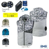 迷彩プリントとのツートーンがオシャレなカジュアルタイプベスト。何より動きやすいのが特徴。袖口はパイピング仕様にしているので余計な風を外に逃がさず衣服内を回り、首元から排出されます。袖口がシャーリングになっているので肩周りにも風が通り抜け、より快適です。身頃の膨らみを抑えたシャープなシルエット。【取り扱い上のご注意】炎天下の車内等(高温の場所)に放置しないよう、ご注意ください。羽が折れる場合があるため、エアーガンによるファンの清掃は行わないでください。専用バッテリー以外は使用しないでください。故障や事故の原因になります。この素材は、火気に弱いので火気を扱う現場では着用しないでください。