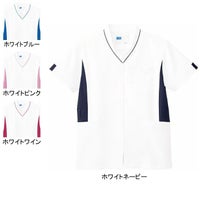 ●関連商品※※WH12006メンズパンツ※WH12012レディースパンツ●素材/TFストレッチラチネ ポリエステル100%●制菌加工、帯電防止素材、ストレッチ、透け防止効果、吸汗・速乾、防汚効果、小物用二重ポケット、センターファスナー開き、キーループ、ポケット二重構造(左右)、袖口・配色色、名札専用ポケット、両脇ポケット●サイズ:SS、S、M、L、LL、EL、4L●カラー:ホワイトブルー、ホワイトピンク、ホワイトネービー、ホワイトワイン