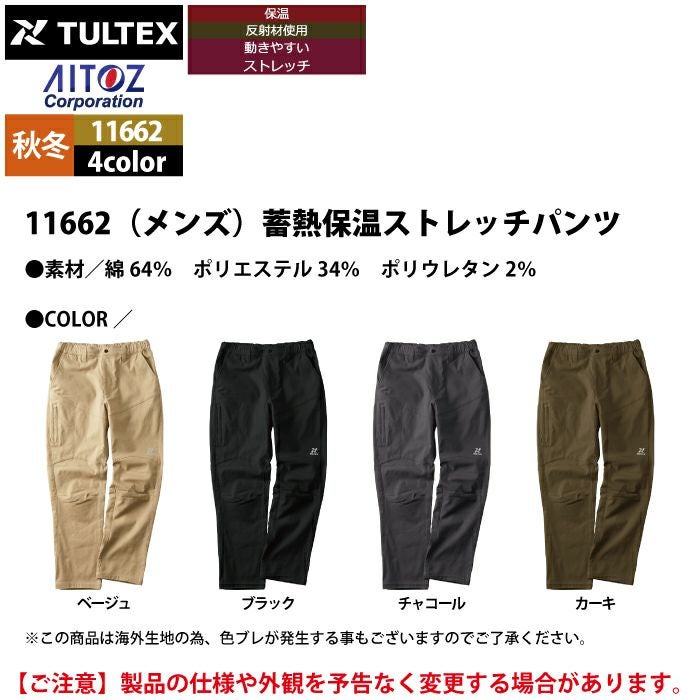 アイトス Aitoz 作業服 作業着 作業ズボン アウトドア 秋冬用 アイトス Aitoz 11662 蓄熱保温ストレッチパンツ(メンズ) M-3L