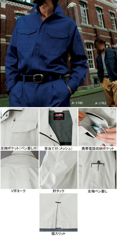 作業服 コーコス A-1748 長袖シャツ S-LL