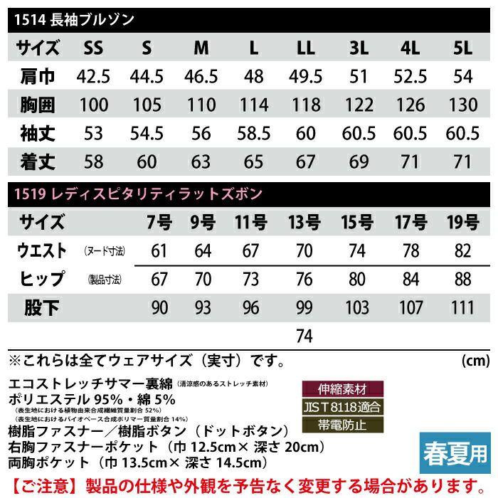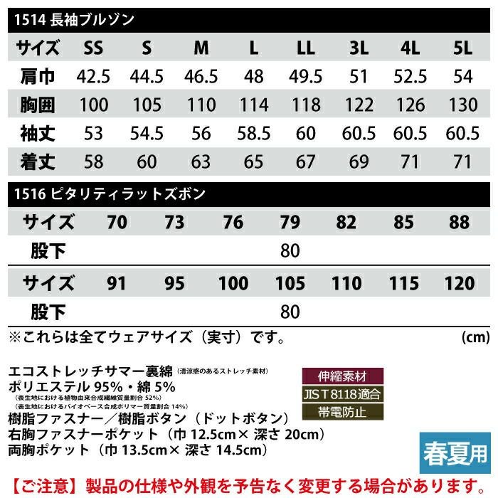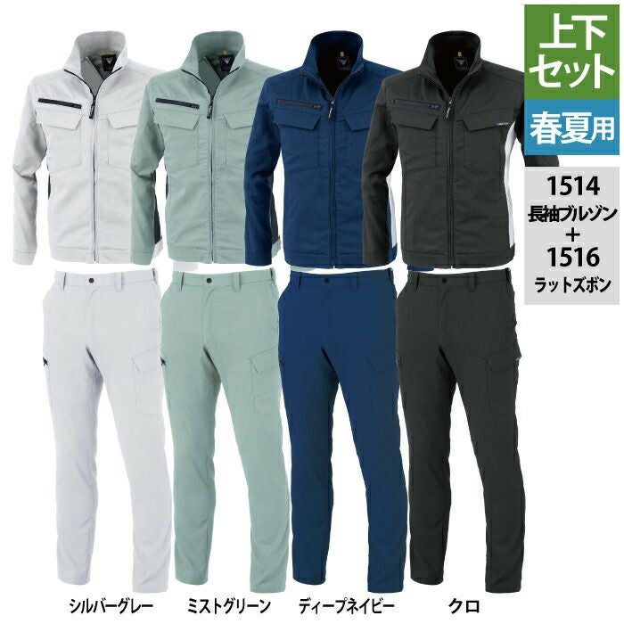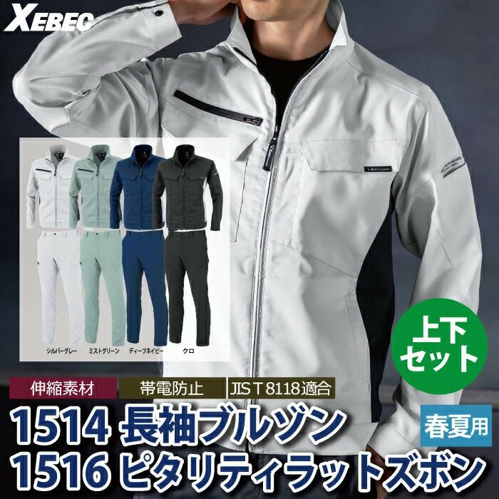ジーベック XEBEC 作業服 作業着 作業ズボン ジーベック XEBEC 作業服 上下セット 1514 長袖ブルゾンS-3L と 1516 ピタリティラットズボン 70-100 カーゴパンツ 春夏用 作業着