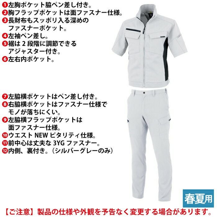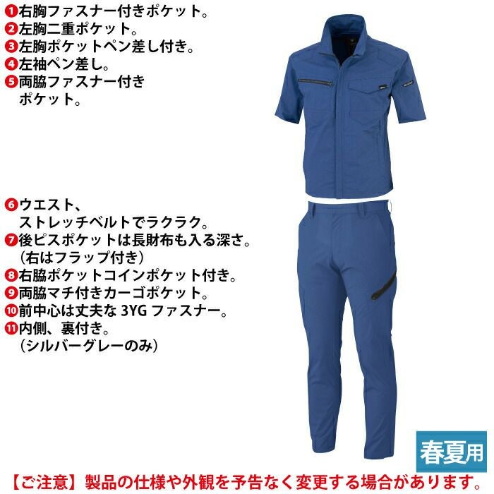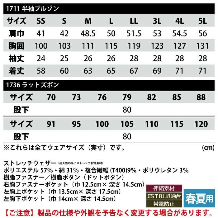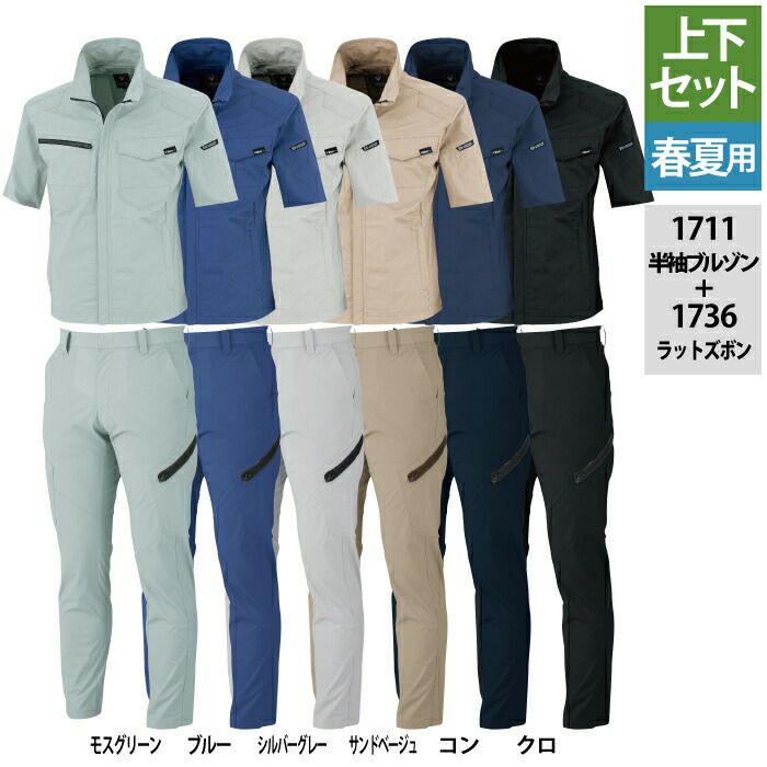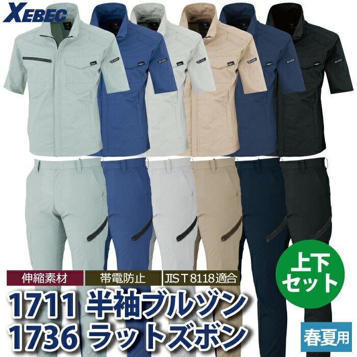 ジーベック XEBEC 作業服 作業着 作業ズボン ジーベック XEBEC 作業服 上下セット 1711 半袖ブルゾンM-3L と 1736 ノータックラットズボン 70-100 カーゴパンツ オールシーズン 作業着