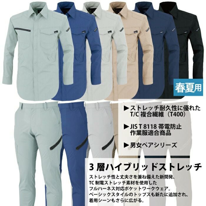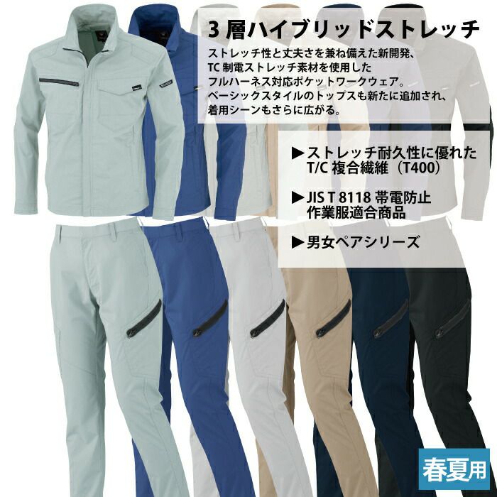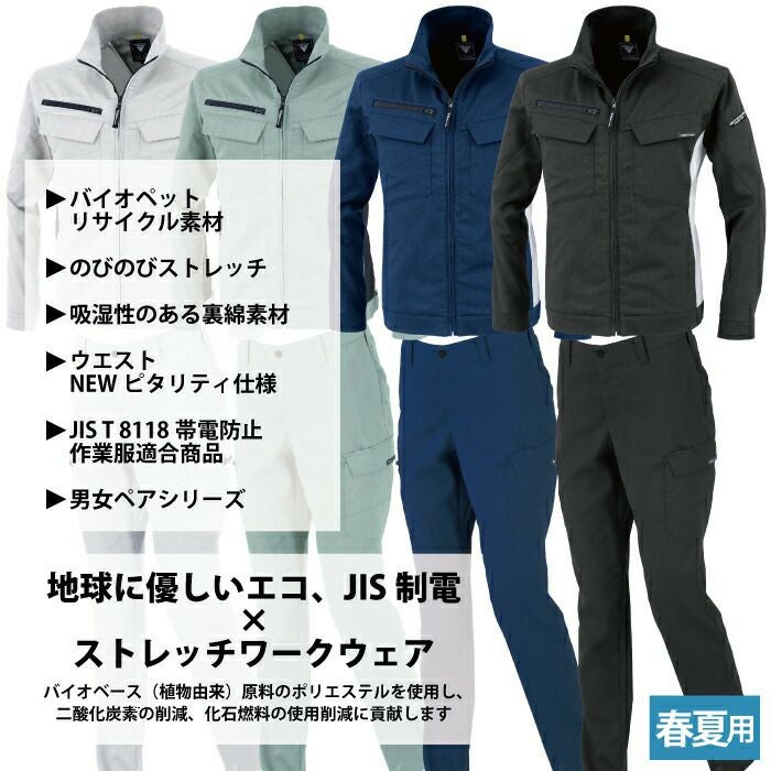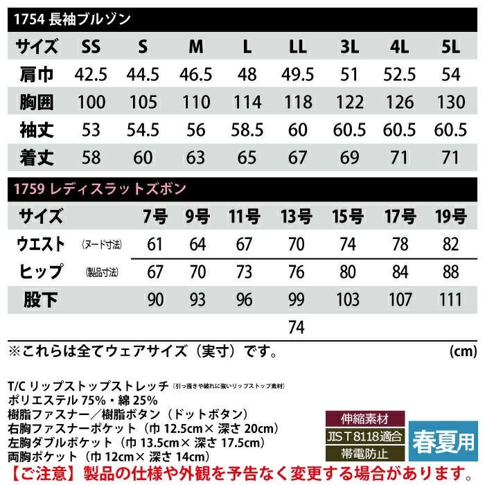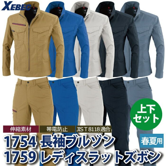 ジーベック XEBEC 作業服 作業着 作業ズボン ジーベック XEBEC 作業服 上下セット 1754 長袖ブルゾンM-3L と 1759 レディースラットズボン 7号-19号 カーゴパンツ 女性用 春夏用 作業着