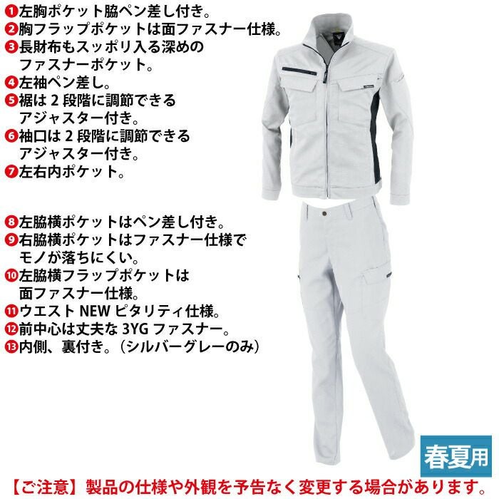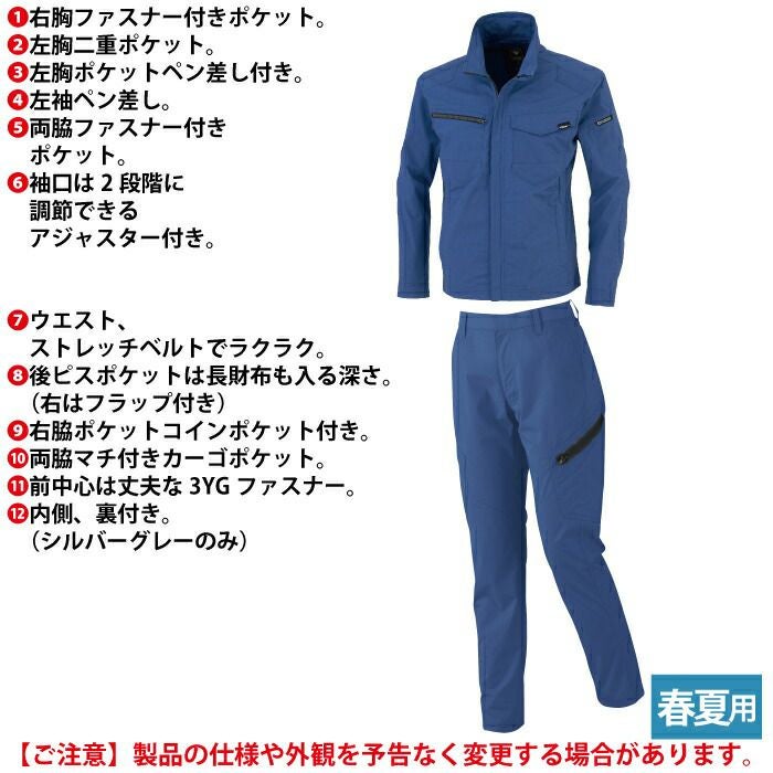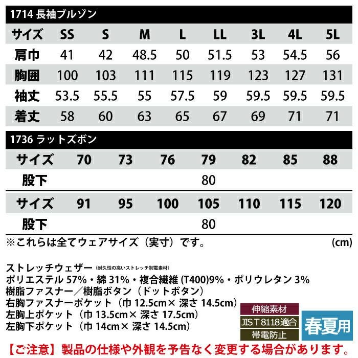 ジーベック XEBEC 作業服 作業着 作業ズボン ジーベック XEBEC 作業服 上下セット 1714 長袖ブルゾンM-3L と 1736 ノータックラットズボン 70-100 カーゴパンツ オールシーズン 作業着