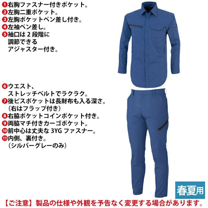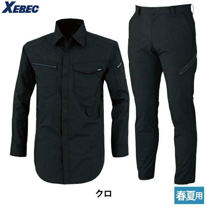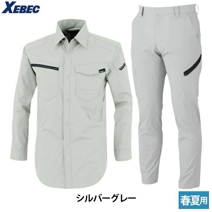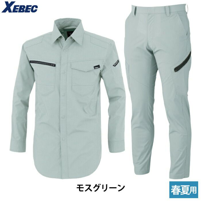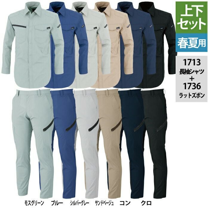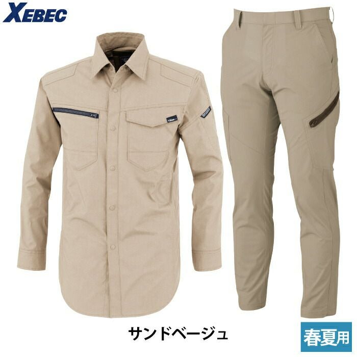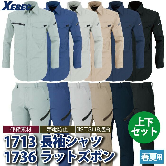 ジーベック XEBEC 作業服 作業着 作業ズボン ジーベック XEBEC 作業服 上下セット 1713 長袖シャツM-3L と 1736 ノータックラットズボン 70-100 カーゴパンツ オールシーズン 作業着