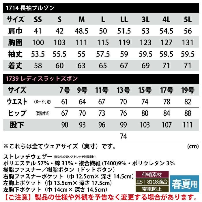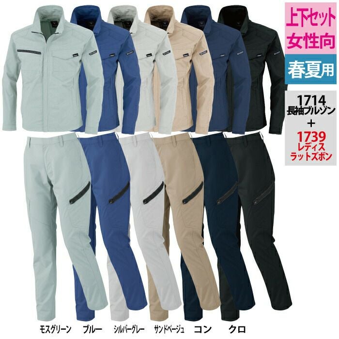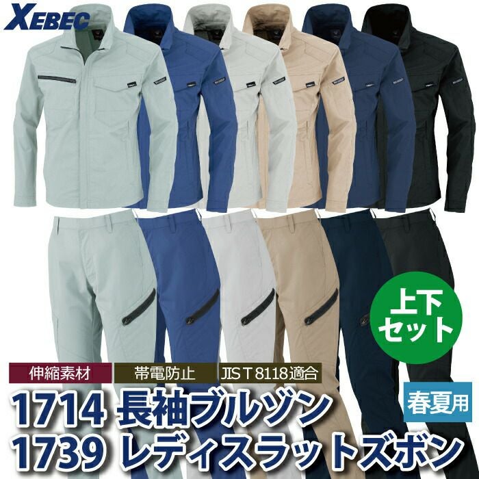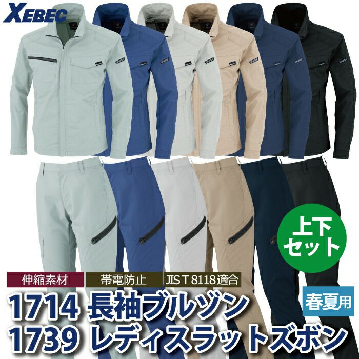 ジーベック XEBEC 作業服 作業着 作業ズボン ジーベック XEBEC 作業服 上下セット 1714 長袖ブルゾンM-3L と 1739 レディスラットズボン 7-19 カーゴパンツ 女性用 オールシーズン 作業着