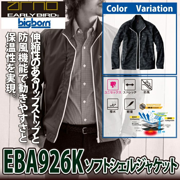 作業服 作業着 ビッグボーン bigborn 作業服 EBA926 ソフトシェルジャケット 6L オールシーズン 作業着