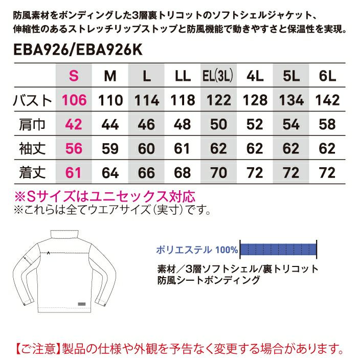 作業服 作業着 ビッグボーン bigborn 作業服 EBA926K ソフトシェルジャケット 3L オールシーズン 作業着