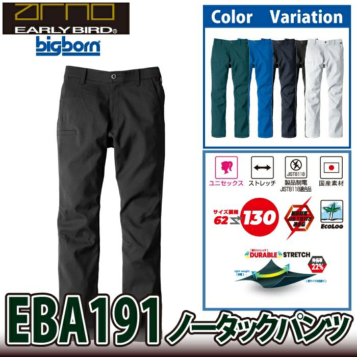 作業服 作業着 ビッグボーン bigborn 作業服 作業ズボン EBA191 ノータックパンツ 62-88 オールシーズン 作業着