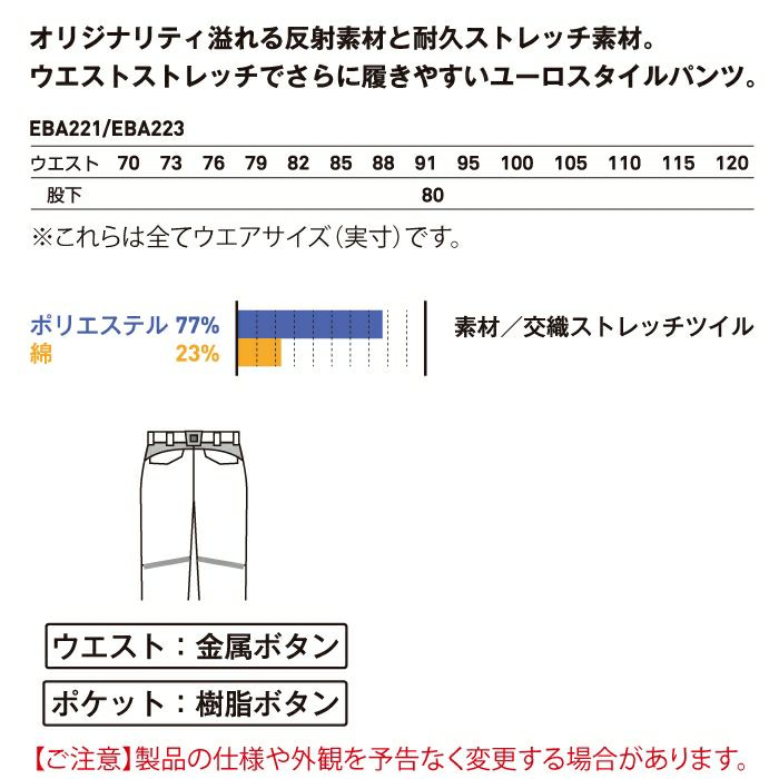 作業服 作業着 ビッグボーン bigborn 作業服 作業ズボン EBA221 ノータックパンツ 91-105 オールシーズン 作業着