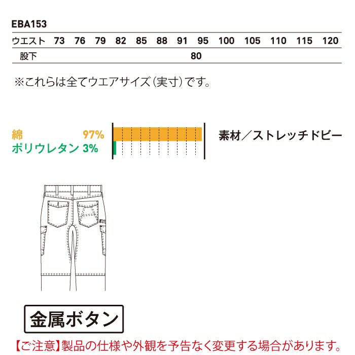 作業服 作業着 ビッグボーン bigborn 作業服 作業ズボン EBA153 ノータックカーゴパンツ 73-88 オールシーズン 作業着