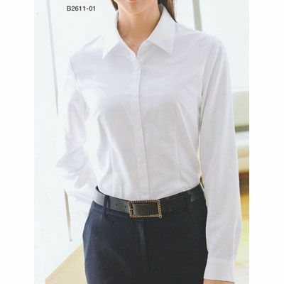 オフィスウェア ピエ B2601-01 長袖ブラウス 17号-19号