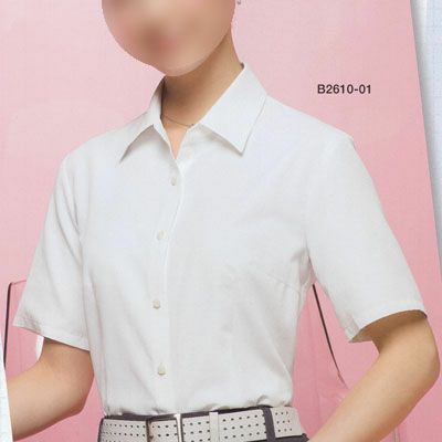 オフィスウェア ピエ B2600-01 半袖ブラウス 17号-19号