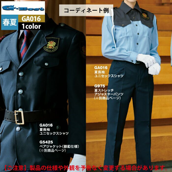 警備服 警備員 警備用 防犯 警備服・防犯商品 春夏用 G-best GA016 夏長袖ユニセックスシャツ SS-5L ワッペンや吊紐は付属なし