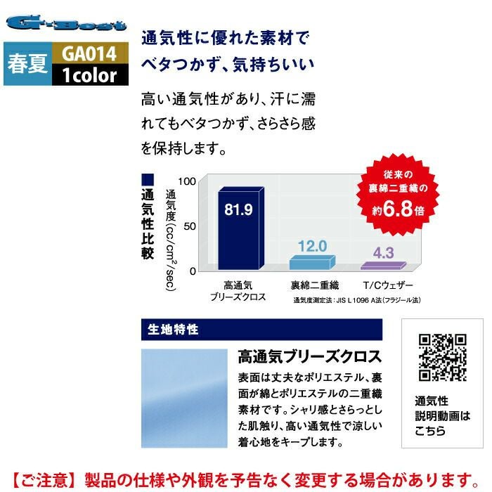 警備服 警備員 警備用 防犯 警備服・防犯商品 春夏用 G-best GA014 夏長袖ユニセックスシャツ SS-5L ワッペンや吊紐は付属なし
