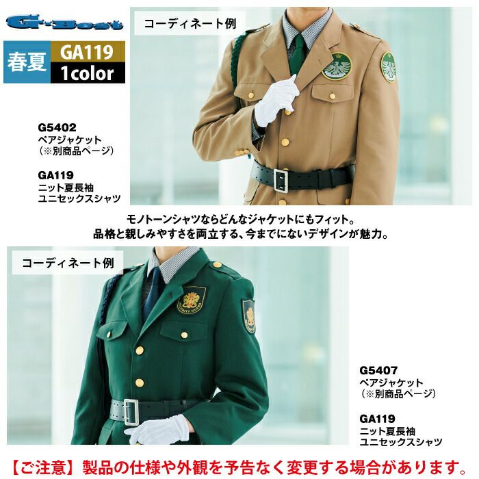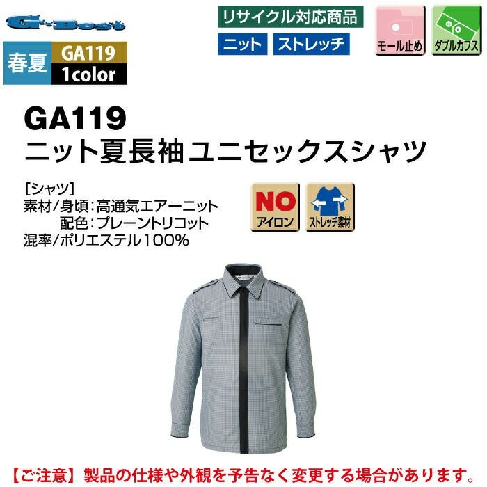警備服 警備員 警備用 防犯 警備服・防犯商品 春夏用 G-best GA119 ニット夏長袖ユニセックスシャツ XS-5L ワッペンや吊紐は付属なし