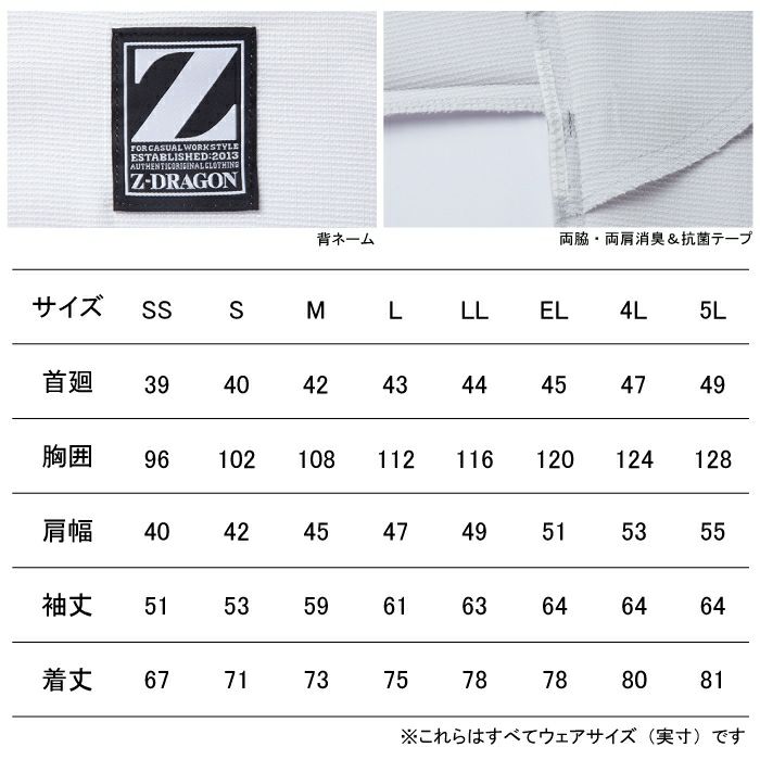 自重堂 Z-DRAGON 作業服 作業着 作業ズボン 自重堂 Z-DRAGON 作業服 インナー 75164 ロングスリーブ EL 春夏用 作業着
