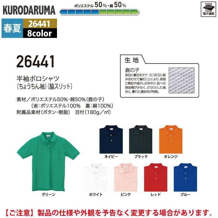 作業服 作業着 クロダルマ 作業服 春夏用 26441 半袖ポロシャツ S-LL