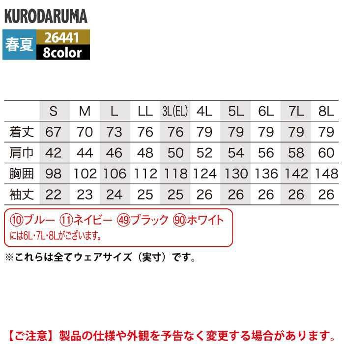 作業服 作業着 クロダルマ 作業服 春夏用 26441 半袖ポロシャツ 3L-5L