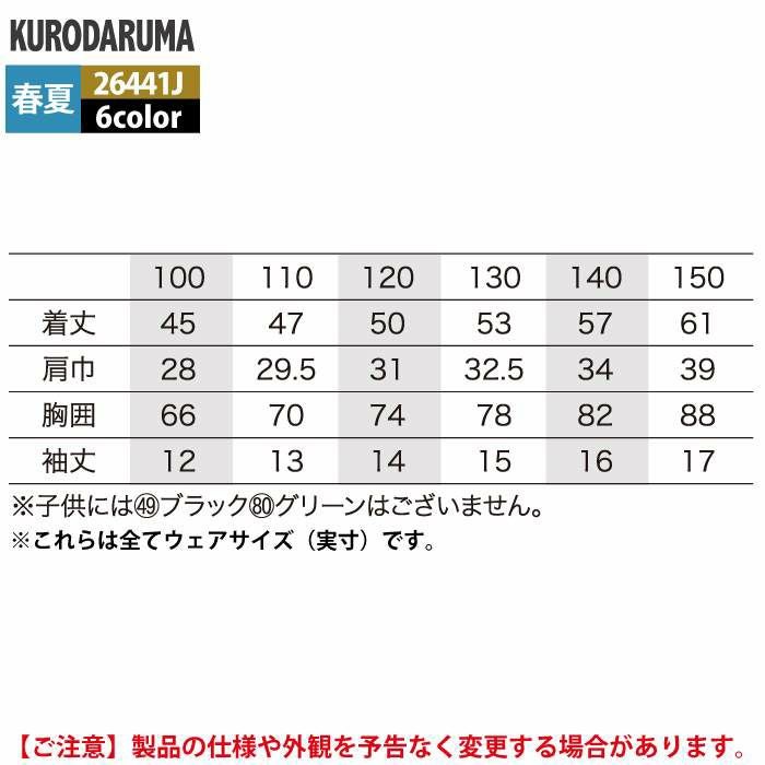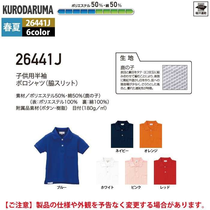 作業服 作業着 クロダルマ 作業服 春夏用 26441J 子供用半袖ポロシャツ 100-150