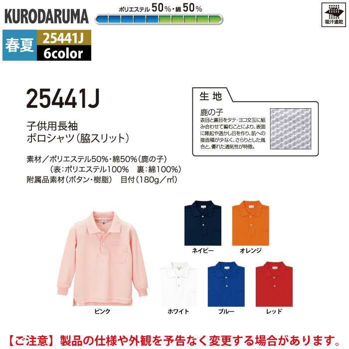作業服 作業着 クロダルマ 作業服 春夏用 25441J 子供用長袖ポロシャツ 100-150