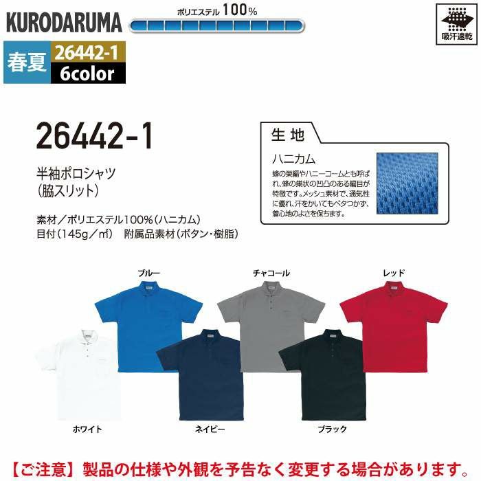 作業服 作業着 クロダルマ 作業服 春夏用 26442-1 半袖ポロシャツ S-LL