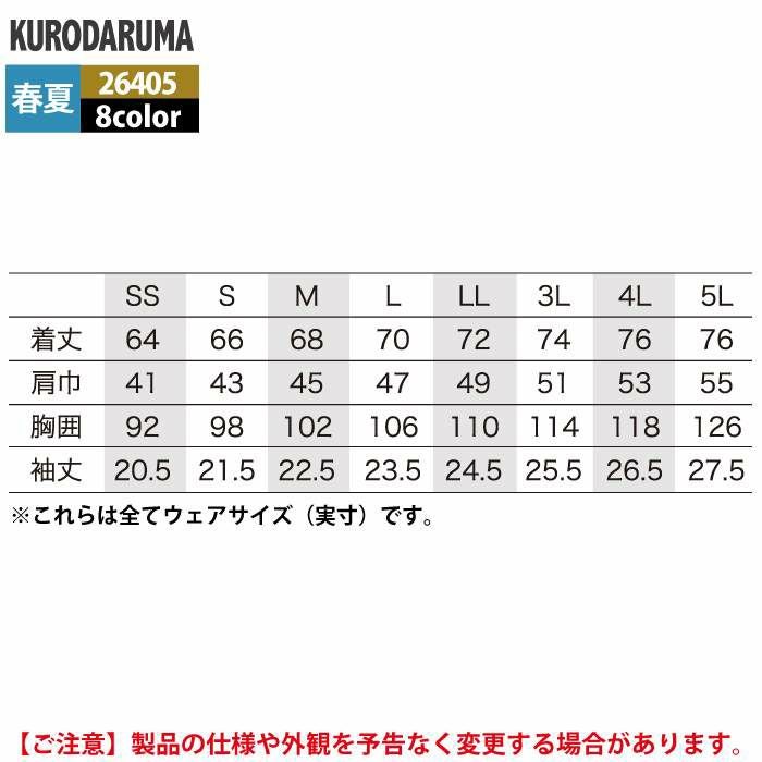 作業服 作業着 クロダルマ 作業服 春夏用 26405 半袖Tシャツ SS-LL