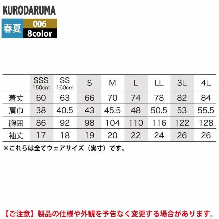 作業服 作業着 クロダルマ 作業服 春夏用 006 半袖Tシャツ SSS-LL