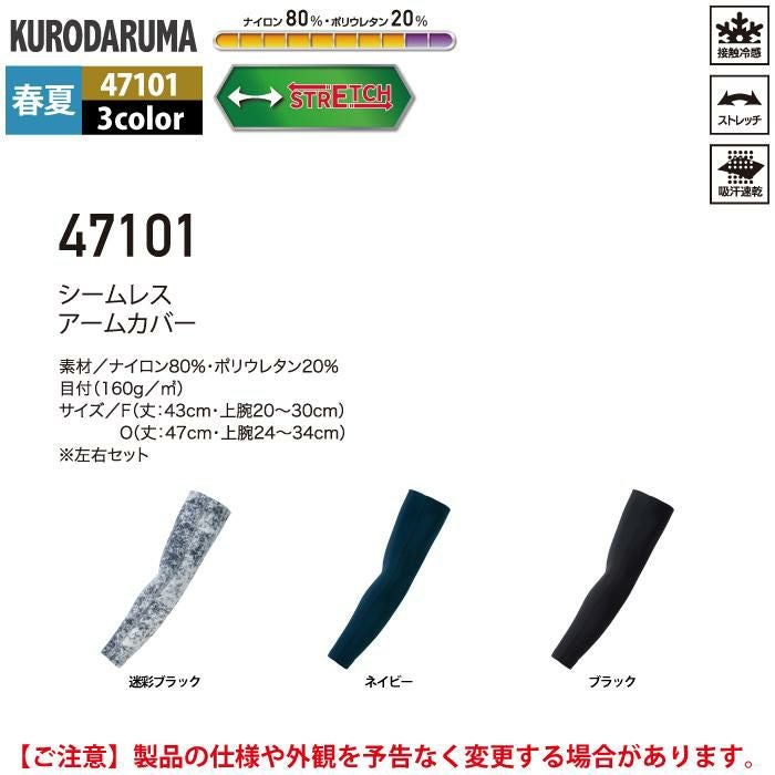 作業服 作業着 クロダルマ 作業服 インナー 春夏用 47101 シームレスアームカバー F-O