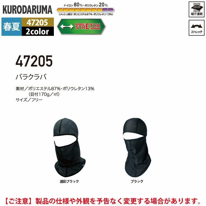 作業服 作業着 クロダルマ 作業服 春夏用 47205 バラクラバ F