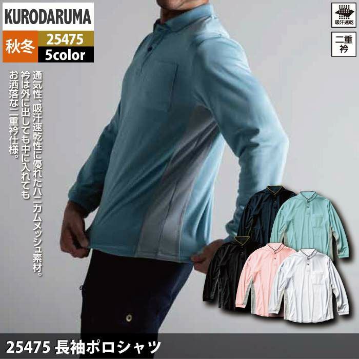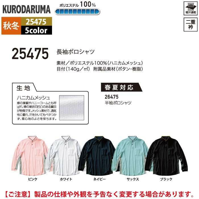 作業服 作業着 クロダルマ 作業服 秋冬用 25475 長袖ポロシャツ S-LL