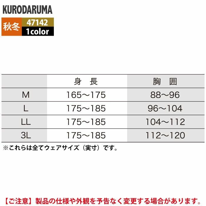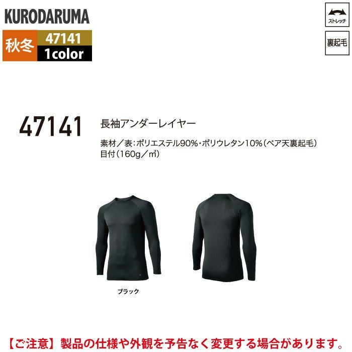 作業服 作業着 クロダルマ 作業服 インナー 秋冬用 47141 長袖アンダーレイヤー M-LL