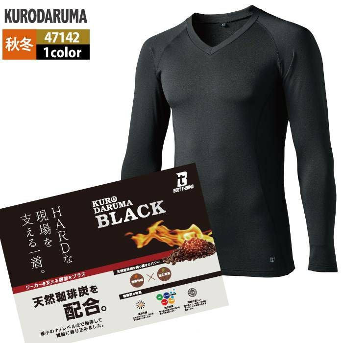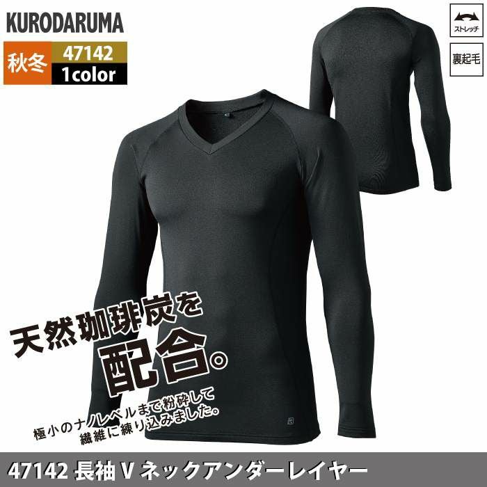 作業服 作業着 クロダルマ 作業服 インナー 秋冬用 47142 長袖Vネックアンダーレイヤー M-LL
