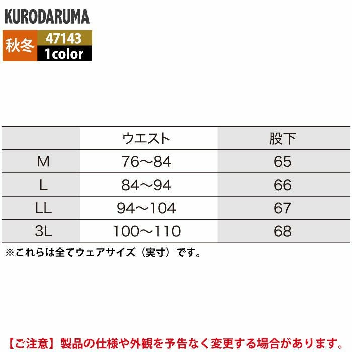 作業服 作業着 クロダルマ 作業服 インナー 秋冬用 47143 アンダーパンツ M-LL