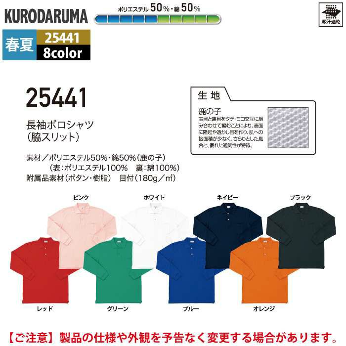 作業服 作業着 クロダルマ 作業服 春夏用 25415-1 長袖ポロシャツ SS-LL