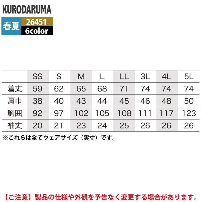 作業服 作業着 クロダルマ 作業服 春夏用 26451 半袖ポロシャツ 3L-5L