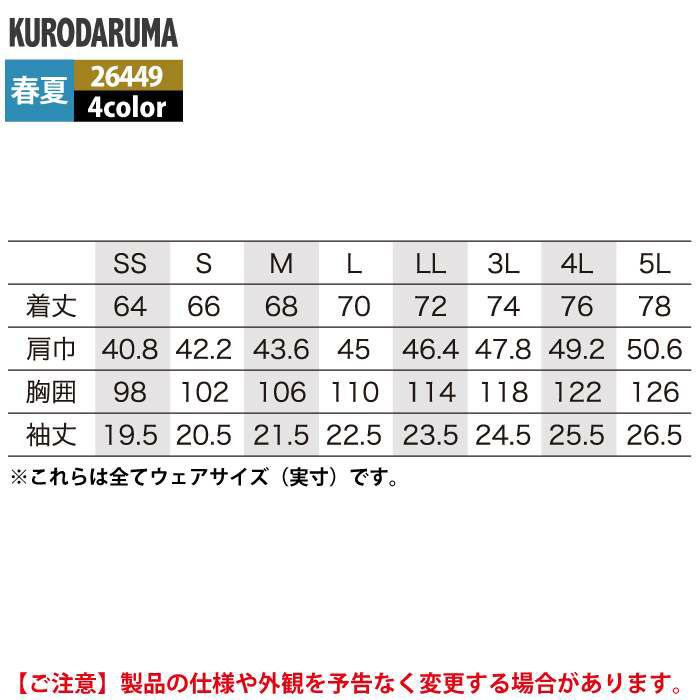作業服 作業着 クロダルマ 作業服 春夏用 26449 半袖ポロシャツ SS-LL