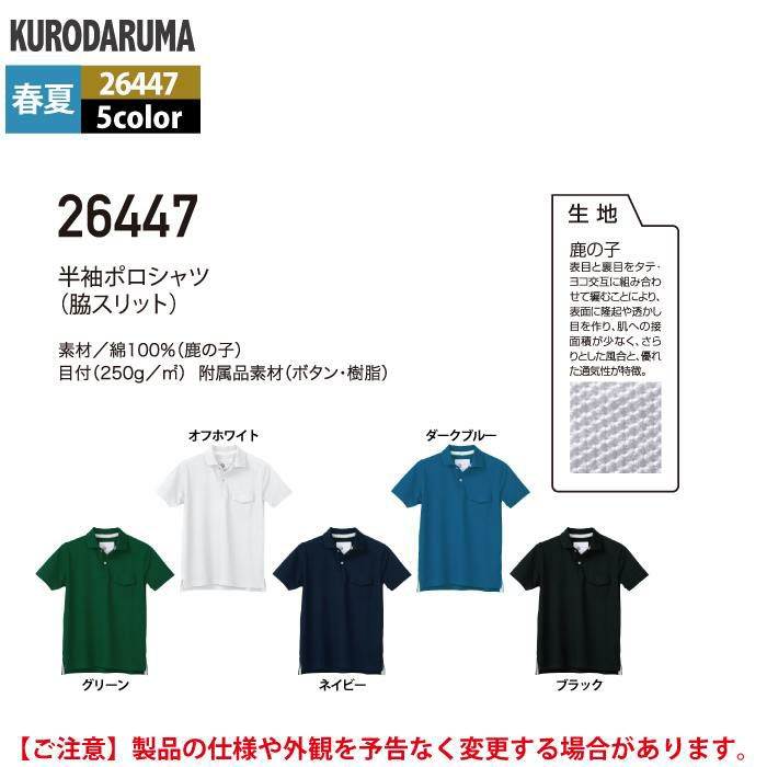 作業服 作業着 クロダルマ 作業服 春夏用 26447 半袖ポロシャツ S-LL