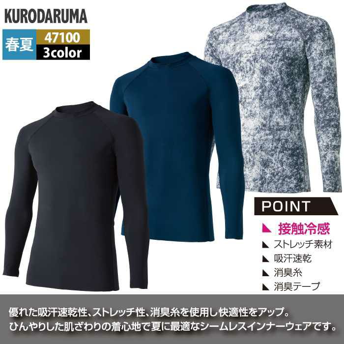 作業服 作業着 クロダルマ 作業服 インナー 春夏用 47100 シームレス長袖アンダーレイヤー M-LL
