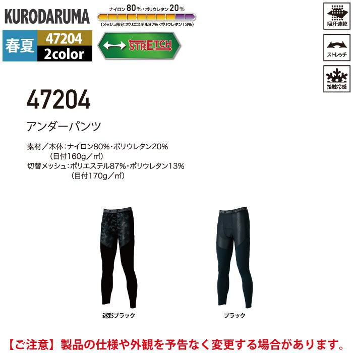 作業服 作業着 クロダルマ 作業服 インナー 春夏用 47204 アンダーパンツ M-LL