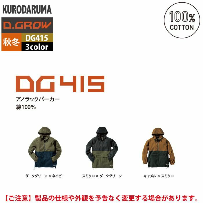 作業服 作業着 クロダルマ 作業服 秋冬用 DG415 アノラックパーカー 3L-5L