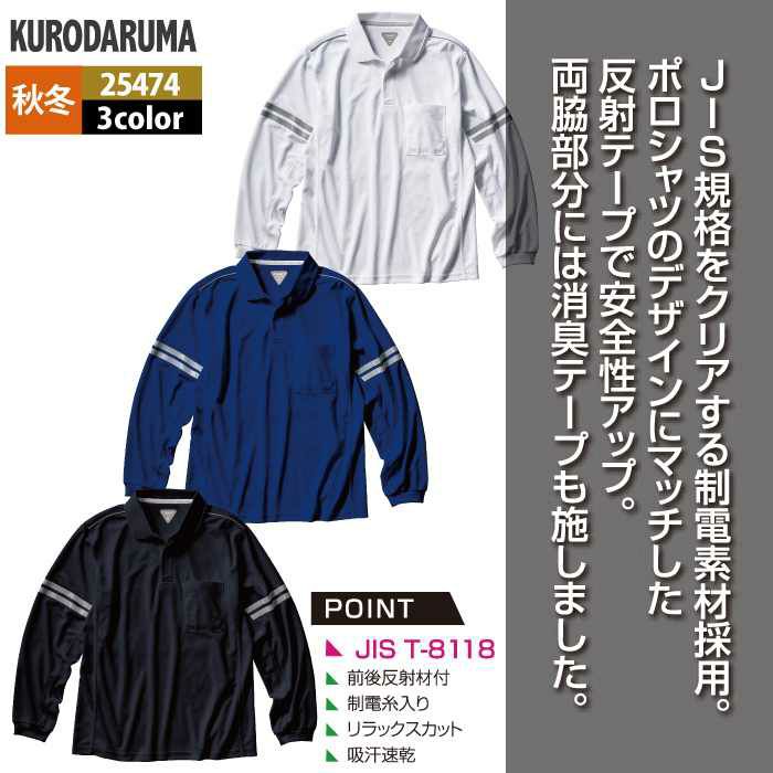 作業服 作業着 クロダルマ 作業服 秋冬用 25474 長袖ポロシャツ S-LL