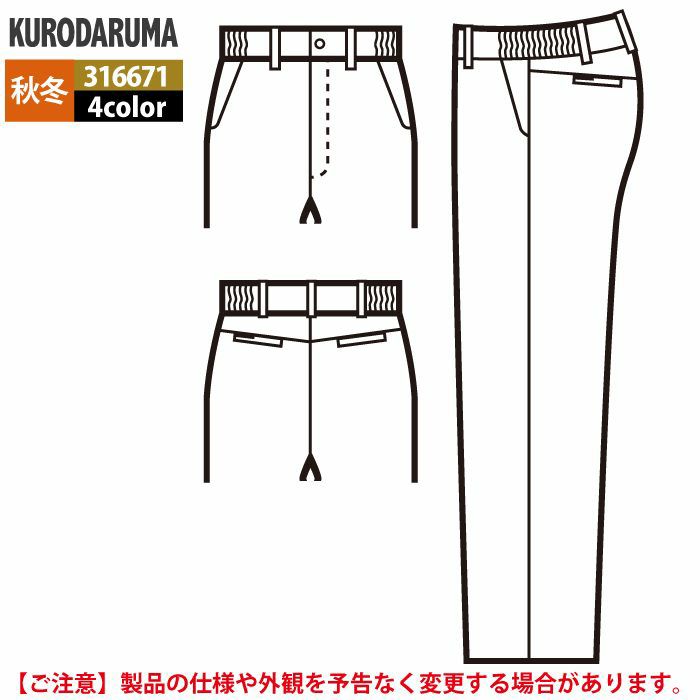 作業服 作業着 クロダルマ 作業服 秋冬用 31667 スラックス(ノータック) 70-88