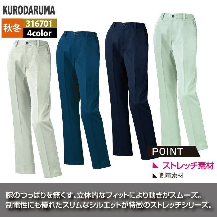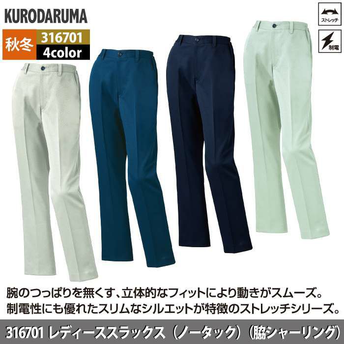 作業服 作業着 クロダルマ 作業服 秋冬用 316701 レディーススラックス(ノータック) SS-LL