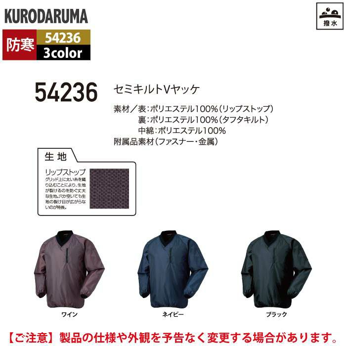 作業服 作業着 クロダルマ 作業服 防寒着 秋冬用 54236 セミキルトVヤッケ M-LL