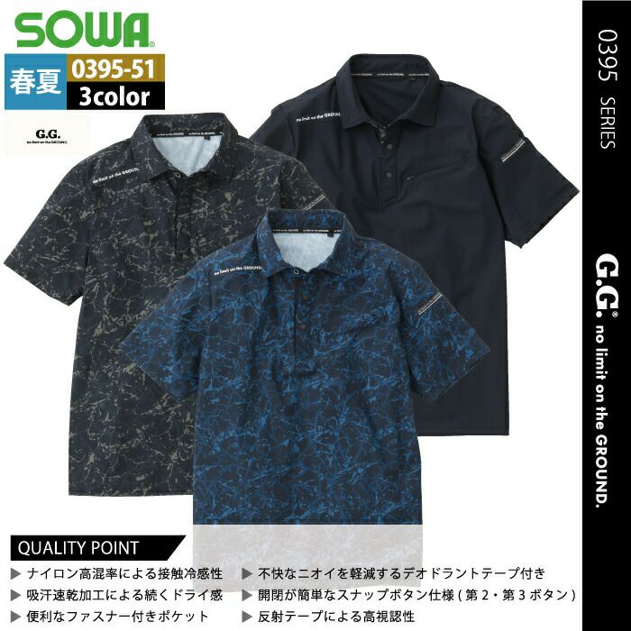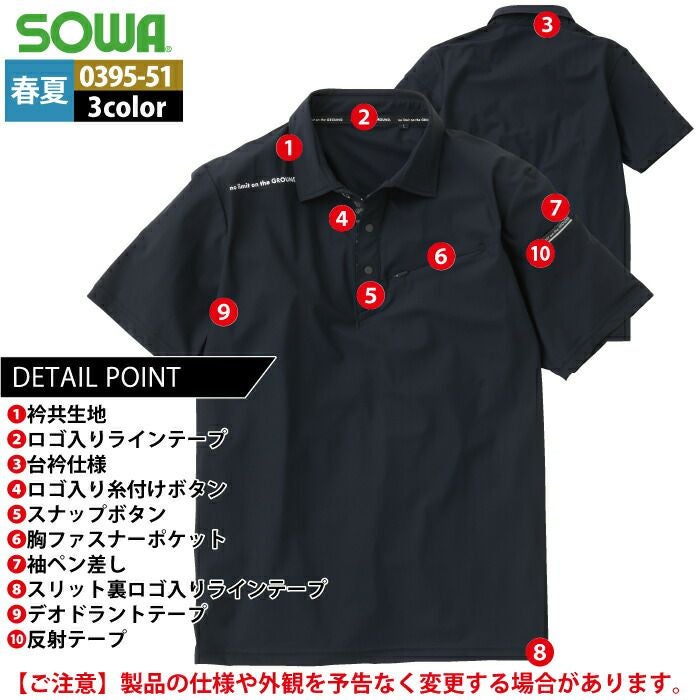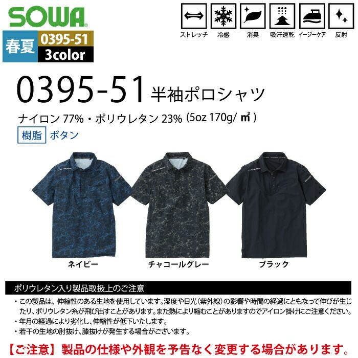 桑和 SOWA 作業服 作業着 作業ズボン 桑和 SOWA 作業服 0395-51 半袖ポロシャツ S-3L 作業服 春夏用